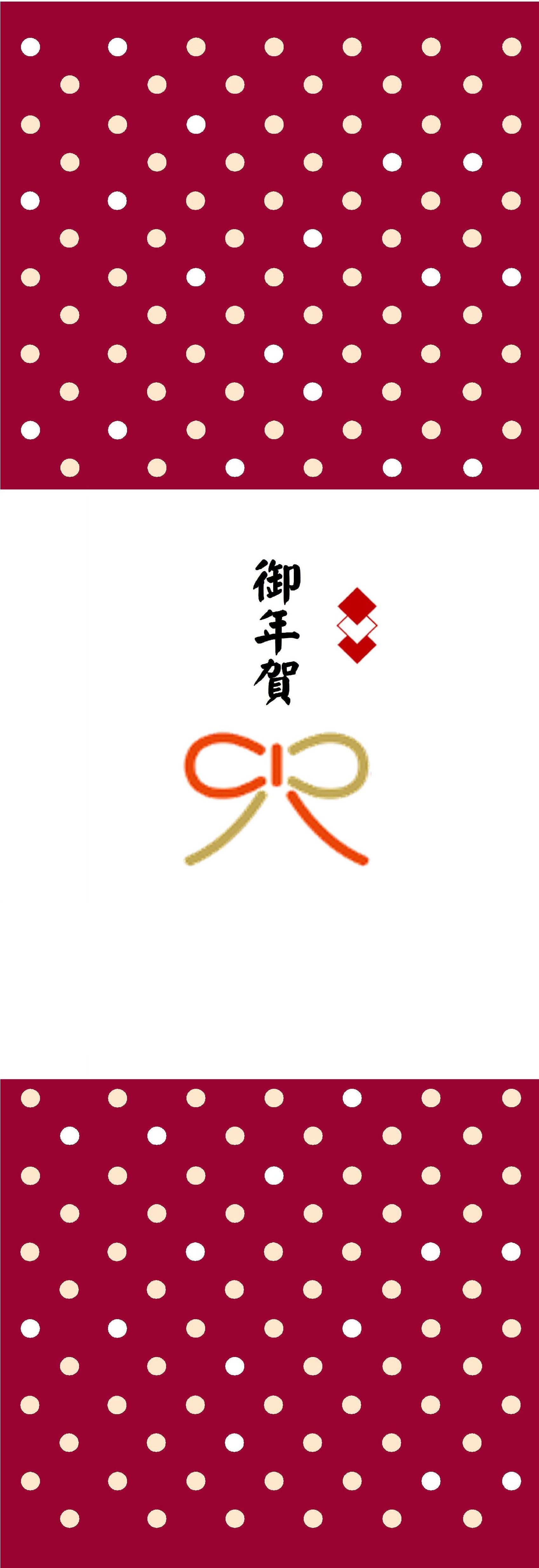 ギフト箱にかけて、お年賀ギフトにできる掛紙です。エンジ地に白水玉のカジュアルなタイプです。